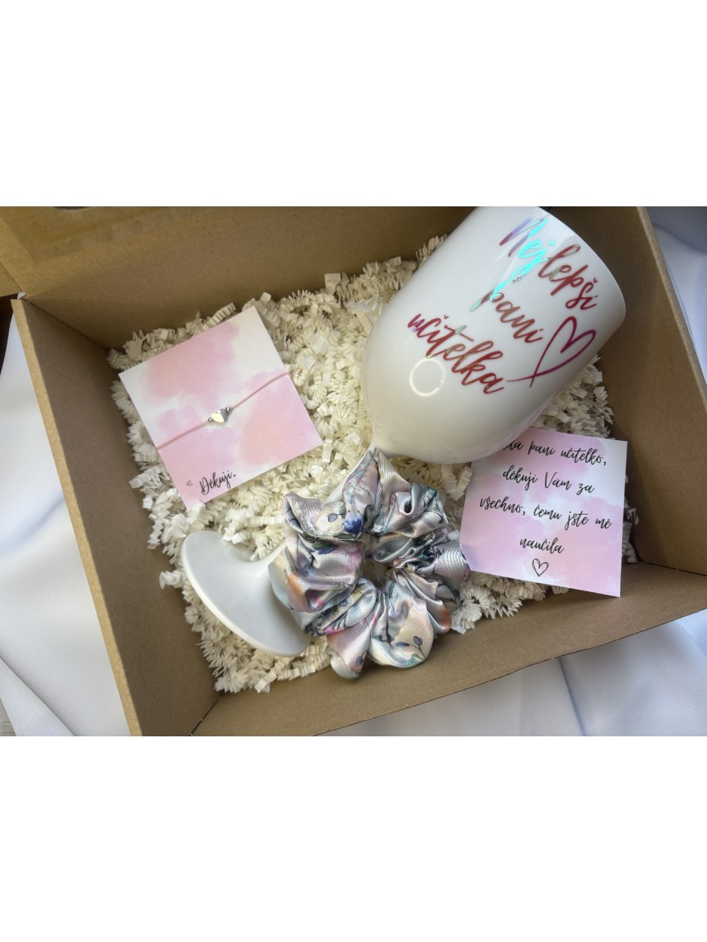 Velký box pro paní učitelku sklenička, velká gumička a šperk