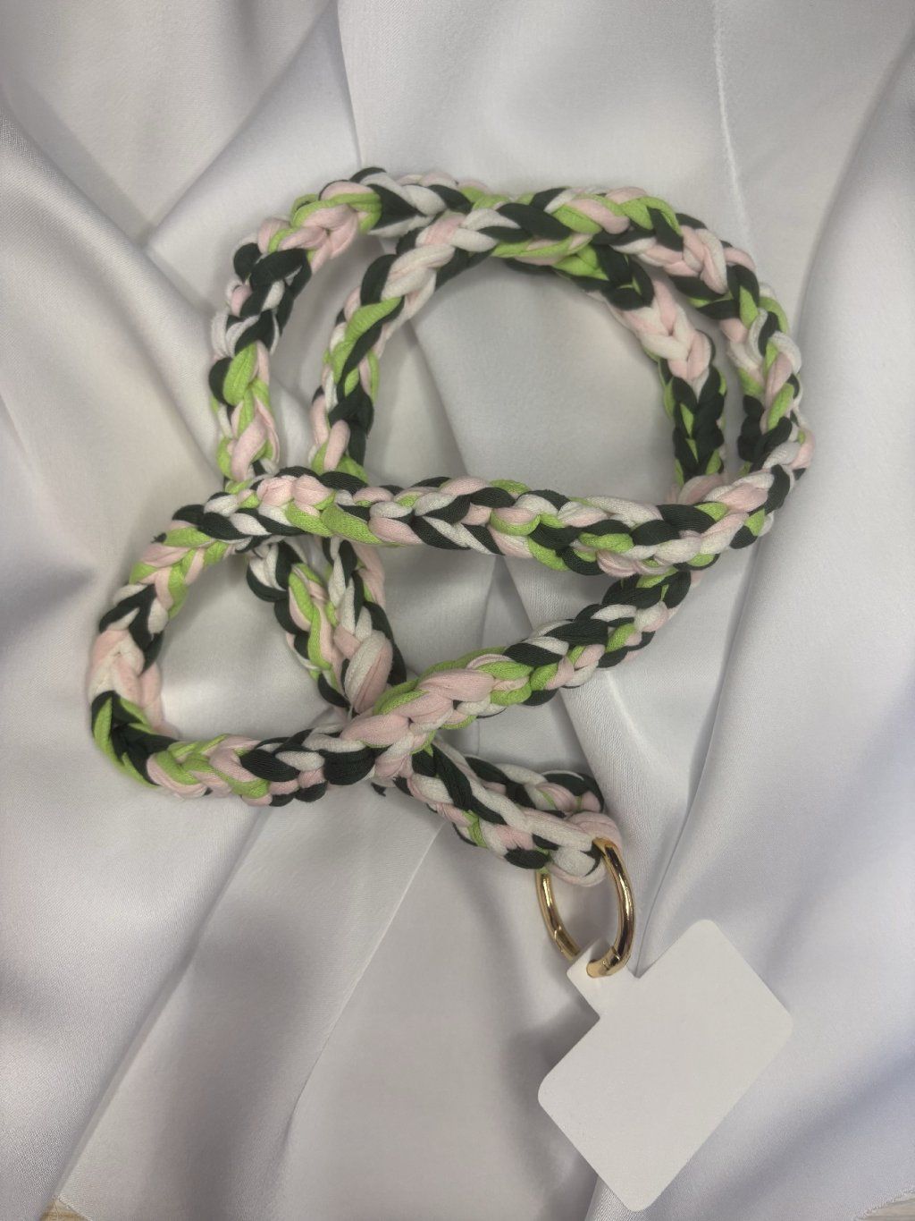 Vystupte z davu s popruhem, který má šťávu! Unikátní kombinace limetkové, růžové a černé barvy dodá vašemu outfitu okamžitou energii. Tento ručně pletený crossbody popruh zajistí, že váš telefon bude v bezpečí, vždy po ruce a stane se nepřehlédnutelným módním prvkem.