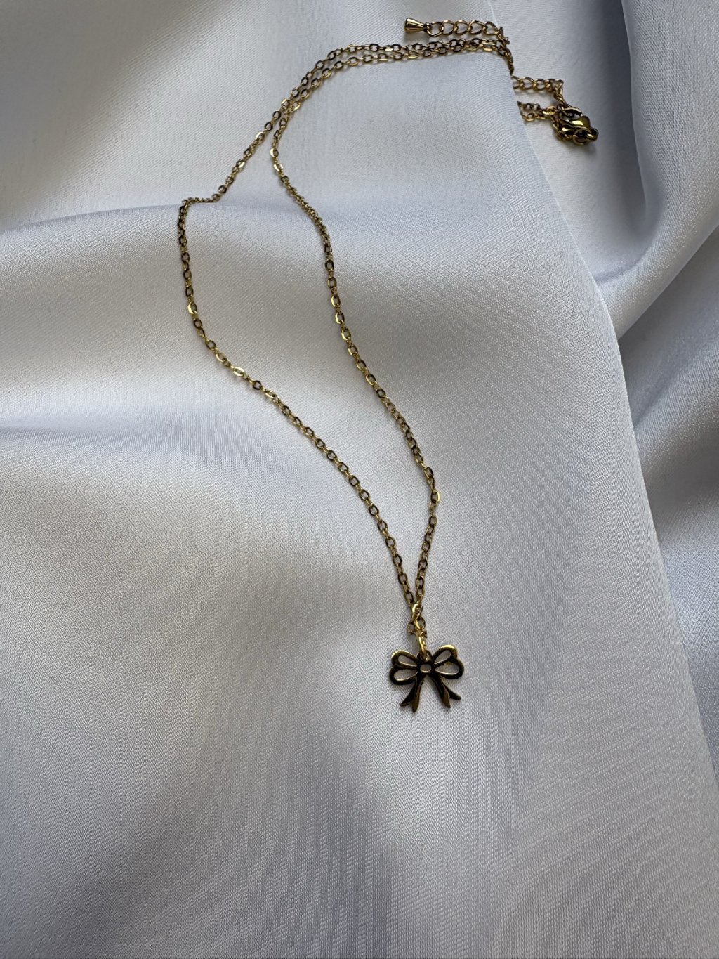 Mašlička už dávno nepatří jen do vlasů. V podobě jemného náhrdelníku se stává symbolem ženskosti. Řetízek je natavitelný, aby na krk sedla úplně každému.