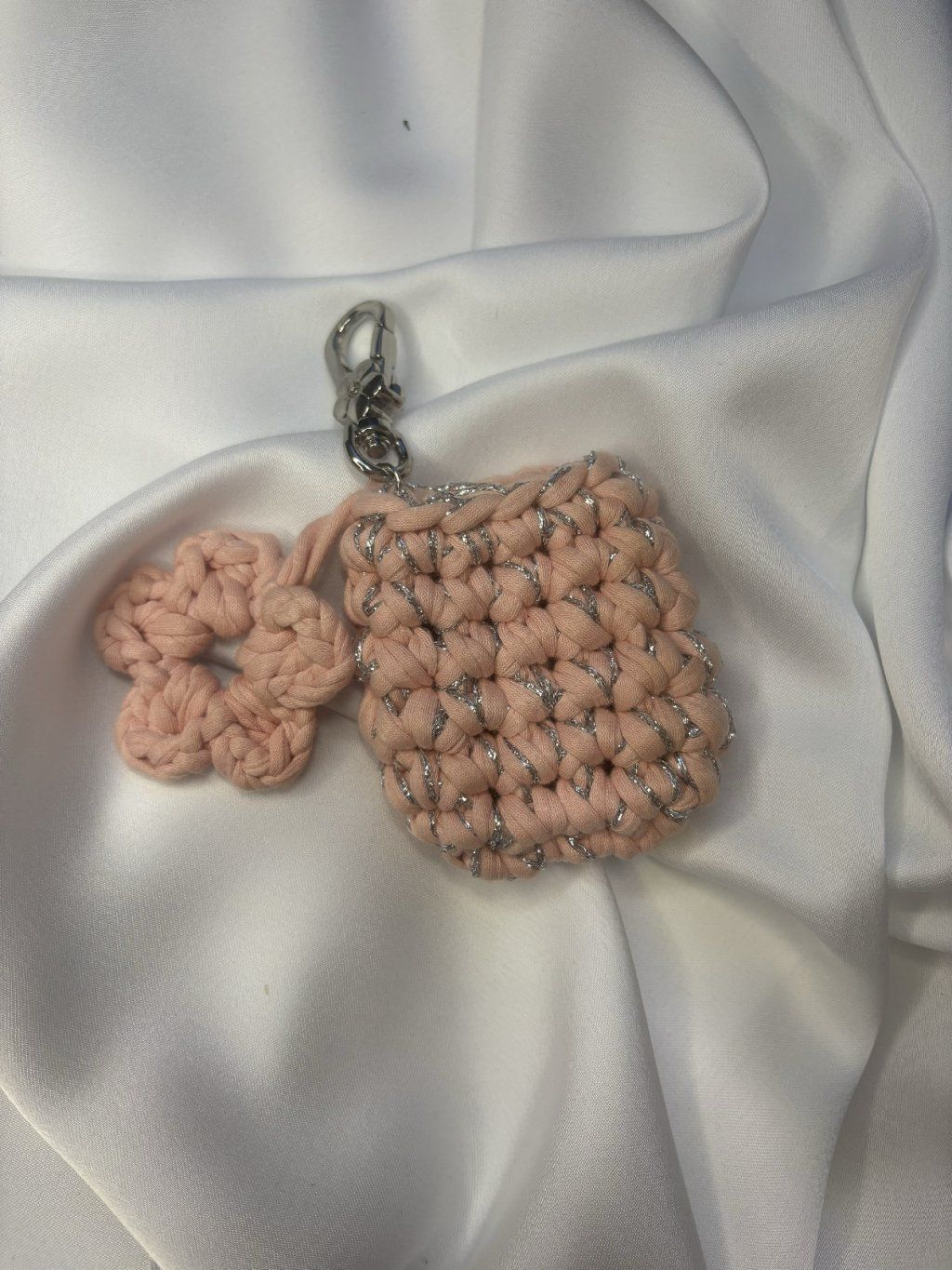 Rozeři svůj den s trochou třpytu! Tento ručně háčkovaný obal v jemné lososové barvě se stříbrným detailem nabízí stylovou ochranu pro tvá sluchátka. Pevná příze tlumí nárazy, zatímco praktická karabina a háčkovaná kytička dělají z pouzdra nepřehlédnutelný módní doplněk.