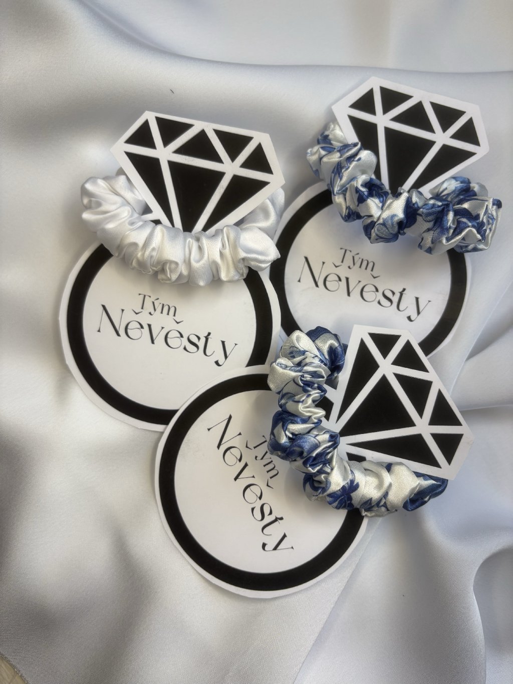 Dárkové malé saténové gumičky, kterými se lze darovat na rozlučce se svobodou.