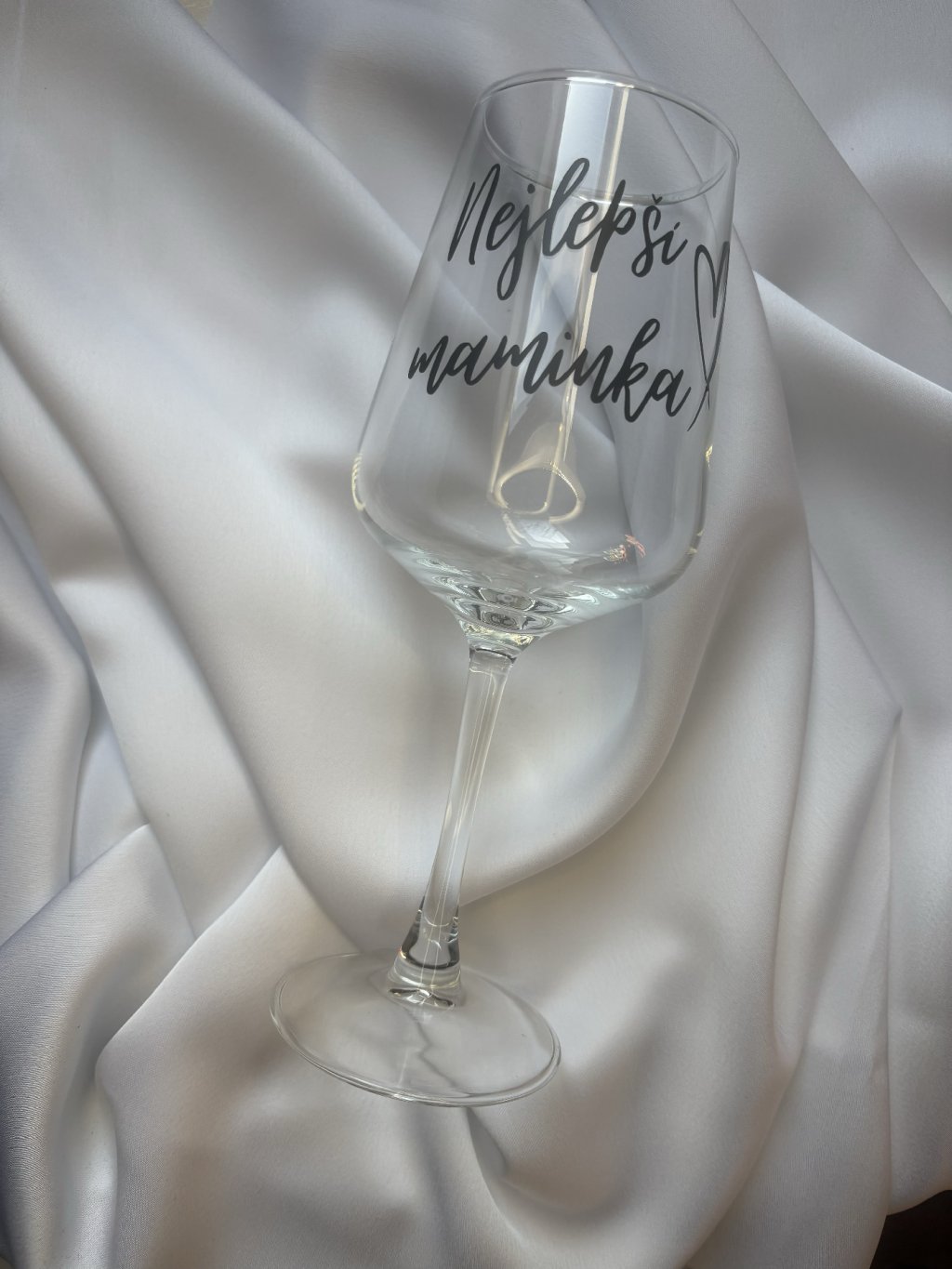 Hledáte originální dárek nejen pro maminku. Můžeme Vám vytvořit originální skleněnou skleničku na víno s vlastním potiskem. Lze nejen změnit barvu, ale i text. Pokud máte o jiný text a barvu zájem, stačí vložit do košíku a vložit do poznámky, co konkrétně na skleničku napsat a jakou barvu textu.