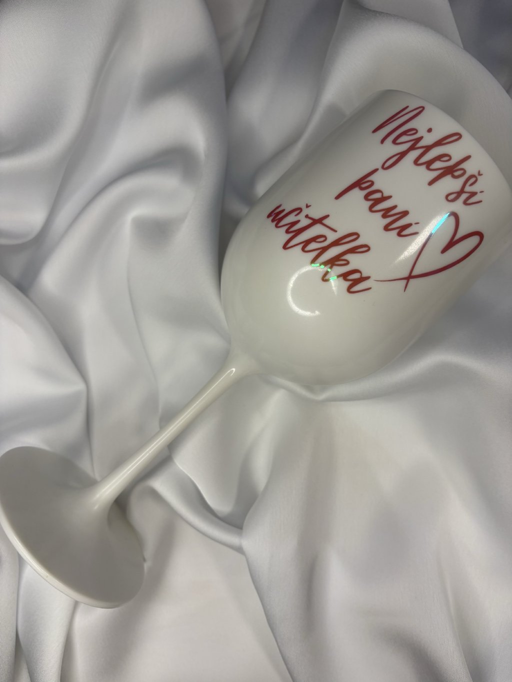 Plastová sklenice na víno s nápisem "Nejlepší paní učitelka"